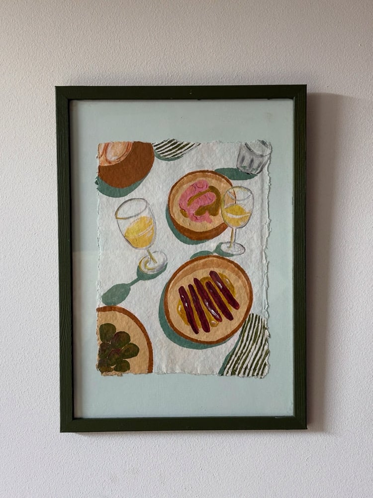 acrylic on hand made paper on a hand painted mount in hand painted a4 frame